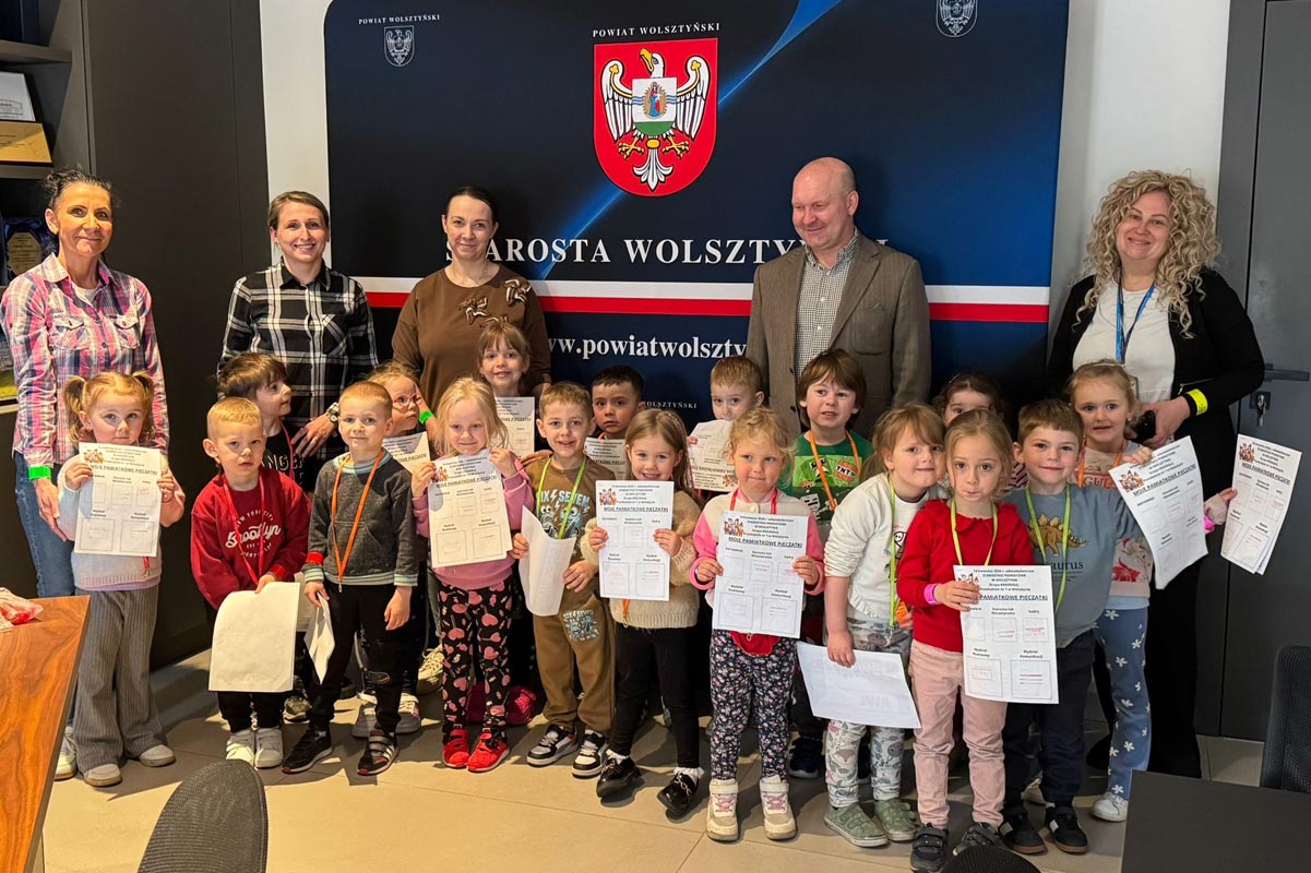 Przedszkolaki, jak wszyscy mieszkańcy, lubią przyjazną i życzliwą atmosferę starostwa. We wtorek (14.04) urząd powiatowy odwiedziły dzieci z grupy „Krasnale” z Przedszkola nr 1 w Wolsztynie. Najmłodsi spotkali się z wicestarostą Mariuszem Silskim, kolorowali herb Powiatu Wolsztyńskiego i zbierali pieczątki w poszczególnych wydziałach. Otrzymali też drobne upominki. Bardzo dbamy o to, aby lekcje wiedzy o samorządzie były ciekawe, angażujące i dopasowane do naszych małych gości — tak, by pierwsze spotkania z lokalną administracją były dla nich pozytywnym doświadczeniem.